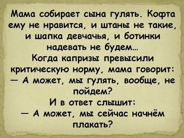 - Мама, как мне жалко лошадок, что они не могут в носу ковырять.
