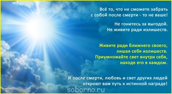 Самое важное — это навести порядок в душе. Соблюдаем три "не": не жалуемся, не обвиняем, не оправдываемся.