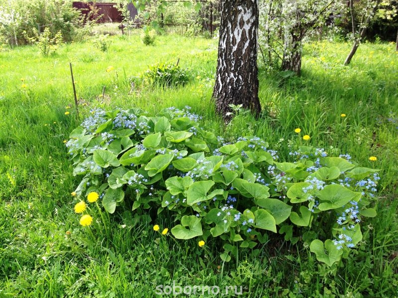 Ещё в этом году буйно цветут бруннеры! Они очень похожи на незабудки, но листочки у них крупные,