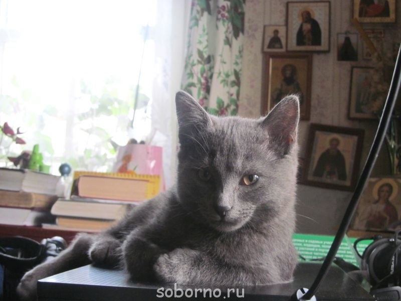 Это мой Дымок. которому я по осени сломала ножку нечаянно.всё зажило,теперь носится так,что не угнаться за ним.