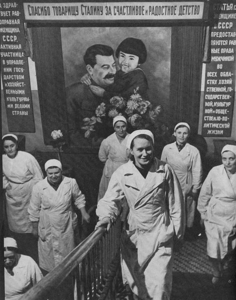 Бомбоубежище на станции метро. Убежище прекрасно организовано. Есть ли авианалет или нет, женщины с детьми должны приходить на станцию к 8 вечера, из-за чего у входа выстраивается огромная очередь. Движение поездов в это время прекращается и детские койки, которые убирают днем, выставляют прямо на платформу. На станциях метров в первую очередь размещают женщин и детей. Больных и ослабленных детей пускают спать в вагоны. Когда людей приходит очень много, то для их размещения используют даже железнодорожные пути. На каждой станции оборудован пункт первой помощи, где дежурит врач и медсестры. На некоторых станциях установлены киноэкраны. Во время длительных авианалетов на станцию приходят торговки, продающие горячий хлеб, мороженное и напитки. Все расходятся по домам обычно в 4 утра, когда заканчивается комендантский час. В течении дня метро платное - проезд стоит 30 копеек (около 6 центов). Ночью бомбоубежища бесплатны. Была новость, что в одну из неглубоких станций попала бомба, в результате чего погибло несколько сотен человек. Эйзенштейн общаясь с Бурк-Вайт как-то пошутил, что станции московского метро выглядят именно так, как кинокомпания Метро-Голдвин-Майер хотела бы, чтобы выглядели бомбоубежища.
