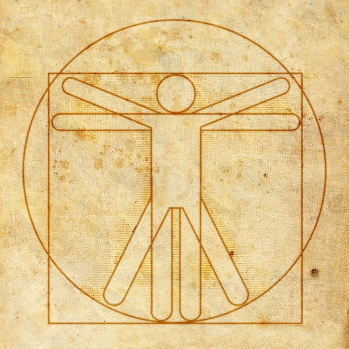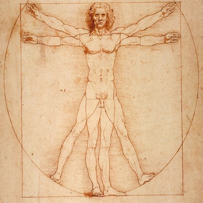 Леонардо да Винчи в своей работе иллюстрировал идею Витрувия о примерной пропорциональности фигуры человека. Для этого он вписал фигуру условного человека в квадрат и описал окружность..