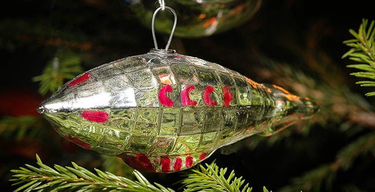После революции рождественскому великолепию почти пришел конец: с 1927 по 1935 год елочные игрушки перестали производить. Впрочем, долго Советская Россия без праздника не жить не захотела, и в 1935-м в газете «Правда» вышла статья с робким призывом «Давайте организуем к Новому году детям хорошую елку!». Рождественская елка довольно быстро переквалифицировалась в идеологически правильную коммунистическую новогоднюю ель — как и игрушки. Не прошло и двух лет после выхода статьи, как в Доме Союзов установили елку, украшенную шарами с портретами членов Политбюро. Самодельные же картонные игрушки, обернутые в фольгу фрукты и фигурки из ваты вместе с духом дореволюционного Рождества ушли в небытие. Зато на фабриках начали в промышленных масштабах выпускать стеклянные фигурки физкультурников, парашютистов, пионеров, аэропланов, поездов, пограничников с собаками, броневиков. Вифлеемская звезда на макушке елки быстро трансформировалась в кремлевскую пятиконечную. Время шло, и на стеклянных шариках сменяли друг друга портреты сильных мира сего. Во время Великой Отечественной войны елочные игрушки тоже выпускались — правда, очень маленькими партиями: танки, солдаты, самолеты. После 1947 года 1 января снова объявили праздничным выходным днем, а елочные игрушки стали разнообразнее: на ветвях красовались всевозможные герои сказок, милые зверята. После выхода фильма «Карнавальная ночь» в моду вернулись стеклянные бусы В 1960-е случился космический бум, и на всех елках страны появились космонавты, ракеты, спутники, планеты.