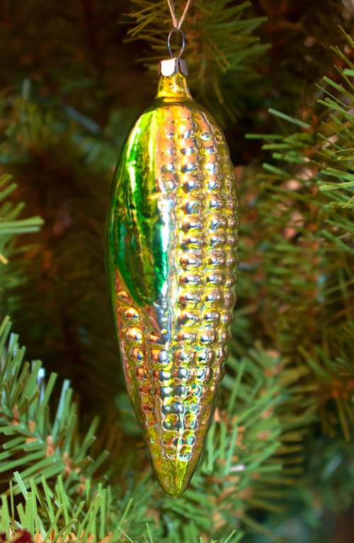 Настоящие фрукты и овощи с елок пропали, зато появились стеклянные, как демонстрация сельскохозяйственных успехов Союза. При Никите Хрущеве была особенно популярна кукуруза, царица полей. Правда, с приходом к власти Леонида Брежнева она с елок практически повсеместно исчезла.