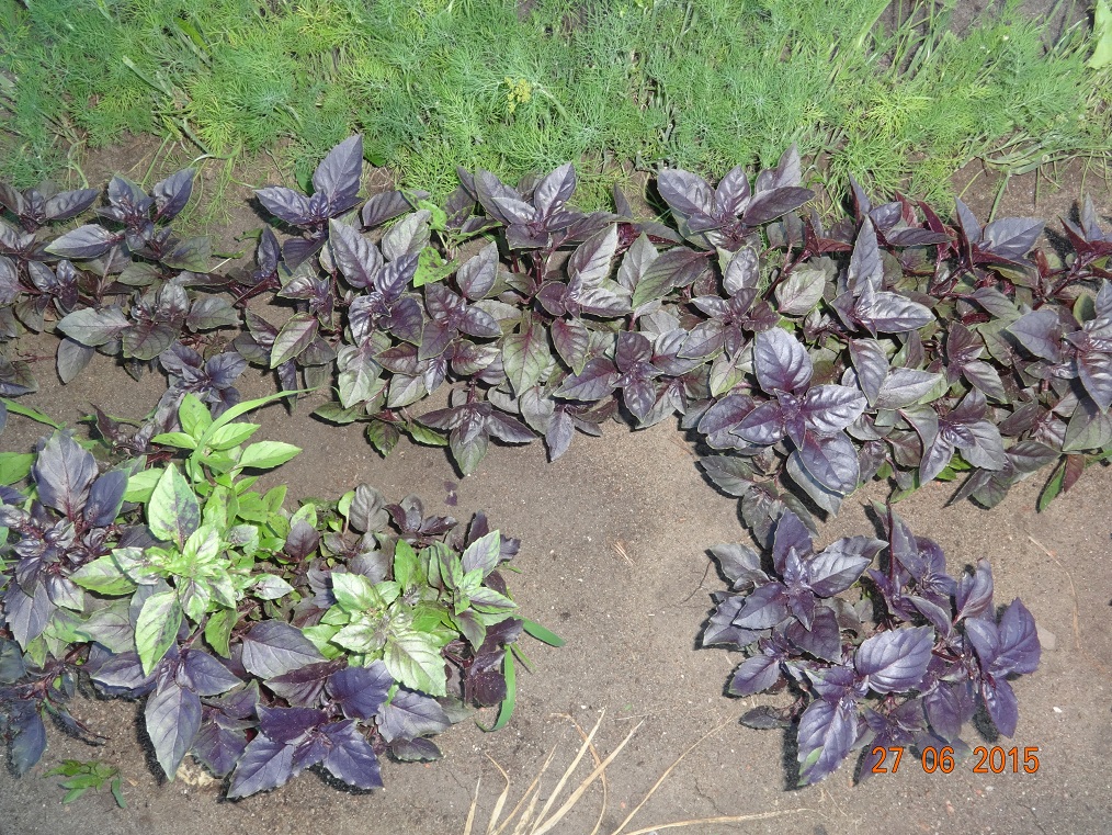 Базилик и на заднем фоне заканчивающийся укропчик. Вишня. Огород Баклажаны