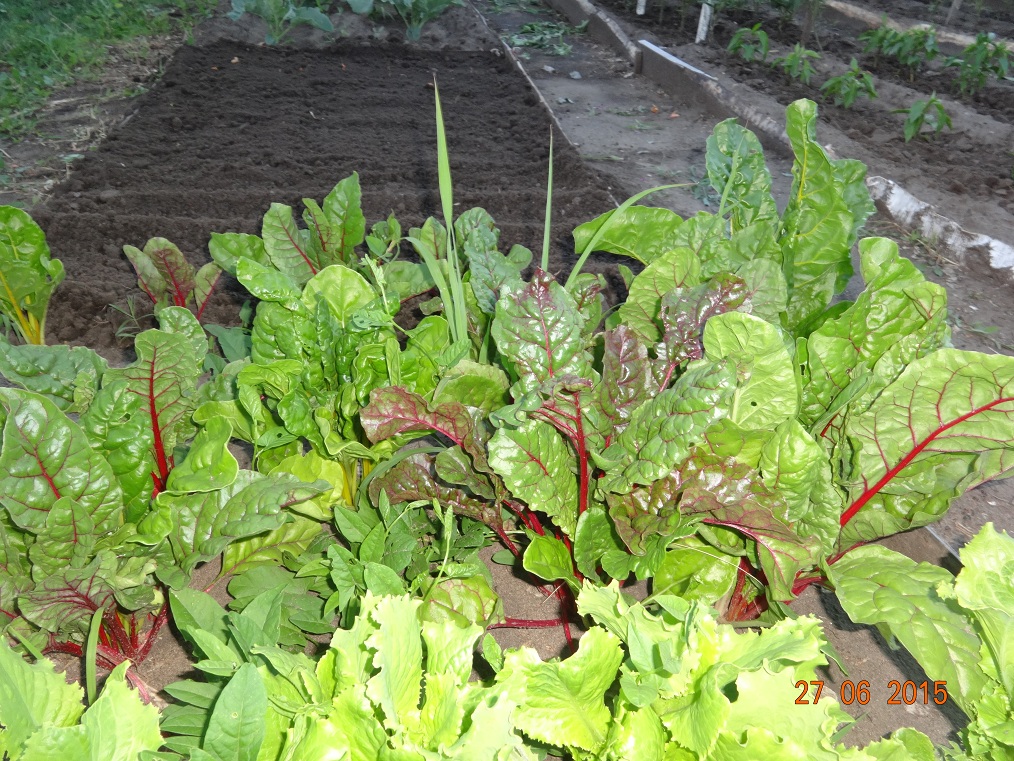 Рассада клубники Листовая свекла и на заднем плане грядка с новыми посадками укропа и лука на перо