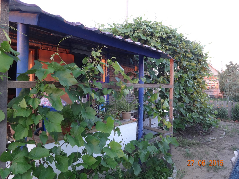 Виноград уже пару раз обрезали и с угла крылечка новый в позапрошлом году укоренили. В этом году сделали решетку, чтоб вьюнки вокруг крыльца не высаживать.