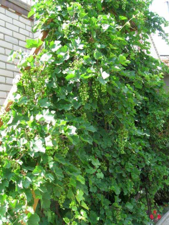 В этом году необыкновенно много винограда завязалось. Он пока зелёный, но уже вот-вот.