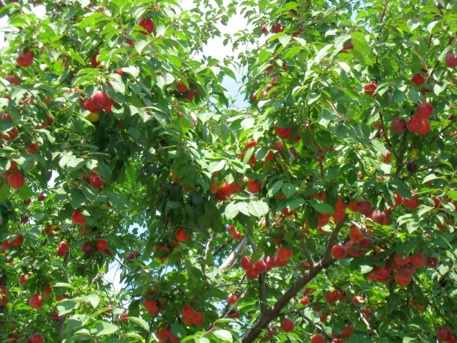И у теток тоже нет. И нарвать не у кого. В стародавние времена, когда я в гости наезжала сюда, я у теткиной соседки с дерева рвала и лопала. А сейчас и соседки той нет и алыча пропала, спилили.