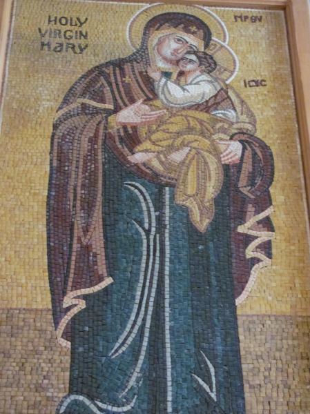 В храме все иконы сделаны из мозаики. Внизу они подписаны на арабском. Батюшка - грек из Огайо. Очень гостеприимный. При храме есть школа, садик, музей, гостиница.