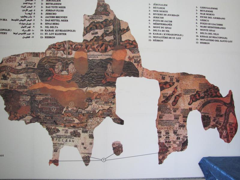 Карта служила путеводителем для паломников по Святой Земле.Ее создали в 560-565 гг н.э.Размеры карты составляли 25м в длину и 5м в ширину. До сегодняшнего дня дошла лишь пятая часть. В центр карты был помещен Иерусалим, он под №1. На востоке она охватывала Амман, Петру, на западе простиралась до Средиземного моря, на юге - до Александрии, а на севере предположительно доходила до Гебала, греческое название Библ.