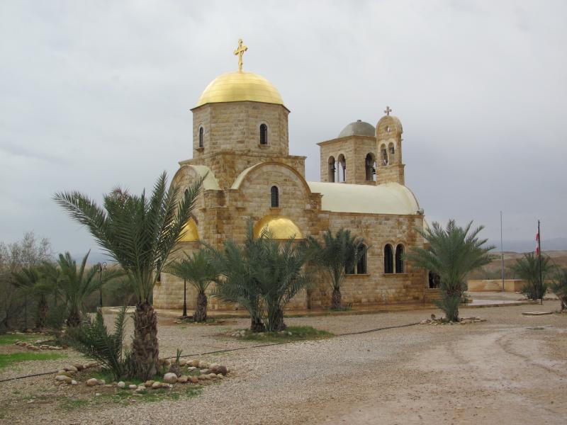 На берегу реки Иордан есть греческая православная церковь Св. Иоанна Предтечи. Строилась и расписывалась она Иерусалимской Патриархией, а купола и крест были позолочены на российские средства и трудом российских мастеров. В будущем недалеко будет построен странноприимный дом для паломников из России на выделенном для этого участке. Пока там только высится подъемный храГреческая церковь находится почти на самом берегу Иордана и до площадки с раздевалками идти всего пару метров.
