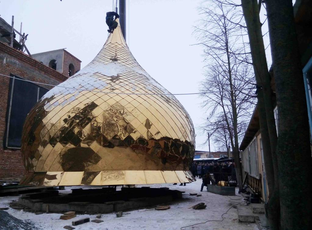 Купол примёрз к временному фундаменту, на котором его собирали. Казалось, проблема до потепления не разрешима. Но люди не расходились. Хор, срывающимися на морозе голосами (до этого пропевшими здесь же литургию), более трех часов пел: «Господи Иисусе Христе, Сыне Божиий, помилуй нас грешных!».
