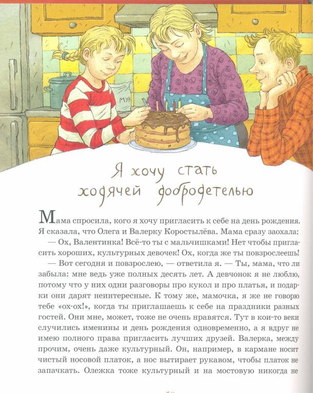 Книга понравилась. Повествование ведётся от лица девочки Валентинки, которая проводит своё лето в деревне. Много разных событий происходит за это время: и поиск клада, и спектакль для односельчан, испытания перед посвящением в герои.