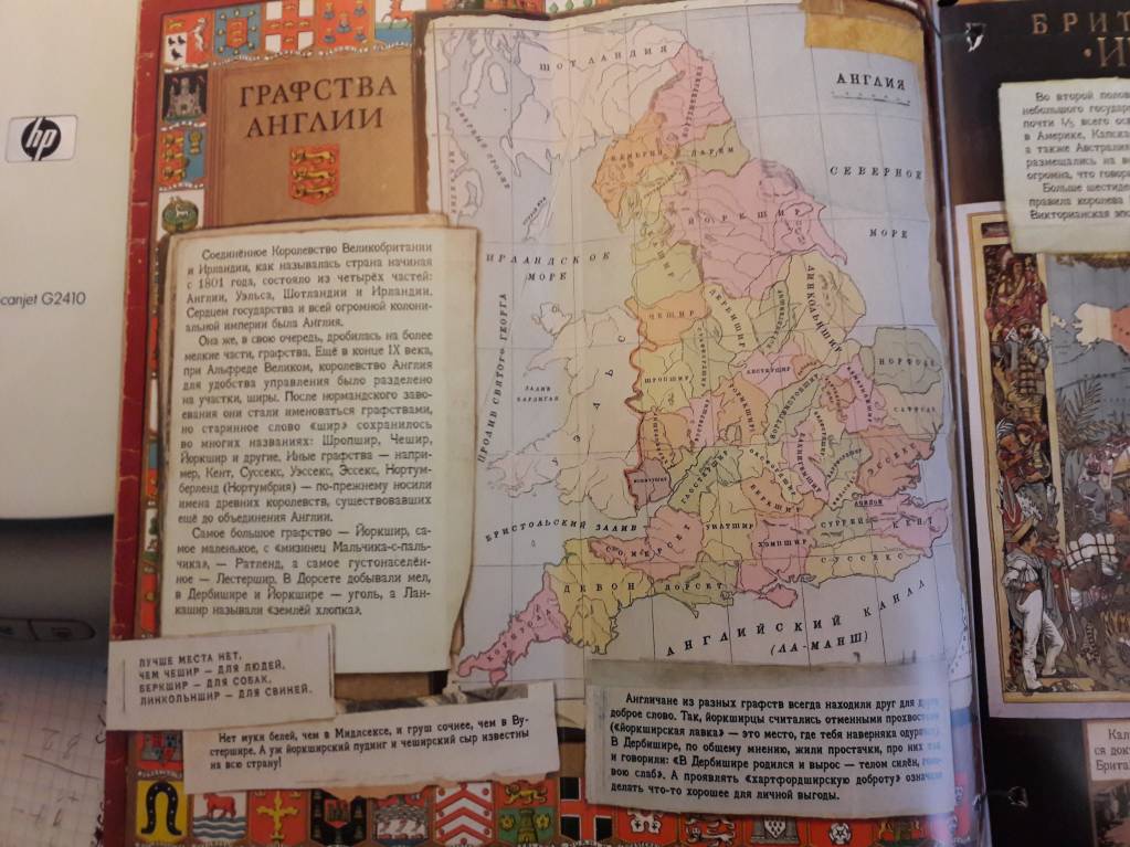 Я с интересом рассматриваю карту графств Англии. Рядом с картой интересные вклейки и врезки.