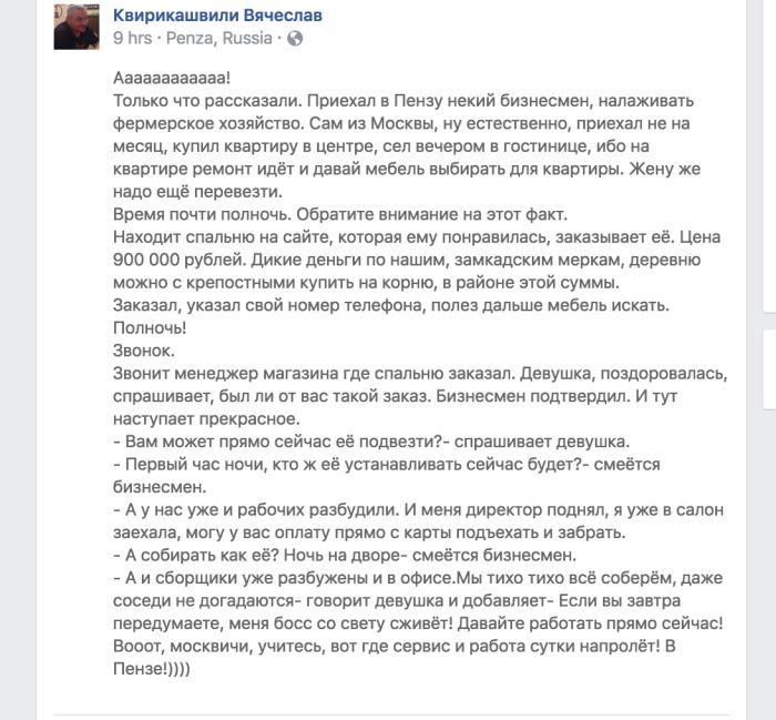 Да наказывать за эти вещи надо. Вот в Европе - шесть часов, все закрыли и ушли домой. Семья, личная жизнь - все имеют право. Приходите завтра. Как и в ссср-е было. Оно, конечно, исключителтно удобно - круглосуточные магазины, доставки и прочее и мы к этому очень привыкшие и в европах этого очень не хватало нам. Но вот это вот - как крепостных среди ночи гнать мебель собирать - нет профсоюзов на это безобразие. Хозяева знают, что люди за работу будут держаться на любых условиях и позволяют себе.