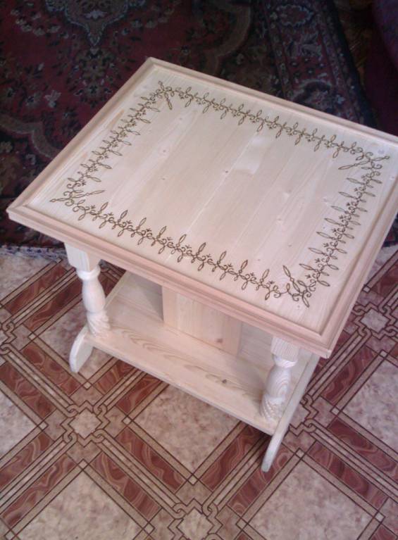 Сегодня попускал слегка дыму выжигателем,обшил столешницу ольховым уголком.осталось покрыть лаком,ну и собственно все.