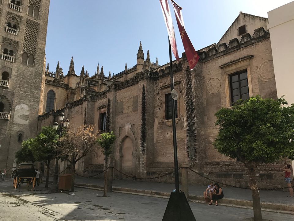 Известная башня Хиральда (Giralda), поднимающаяся над Севильским кафедральным собором является своего рода символом Севильи, отражающим пересечение культуры цивилизаций и эпох. Высота башни составляет около 98 м. Прототипом для постройки Хиральды послужил минарет мечети Кутубия в Марракеше.