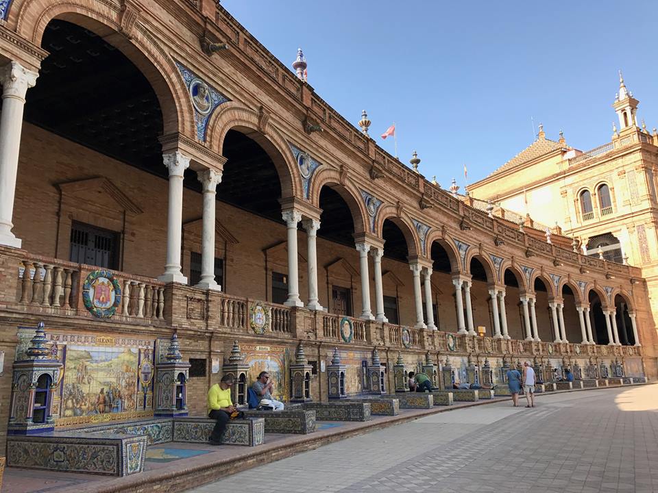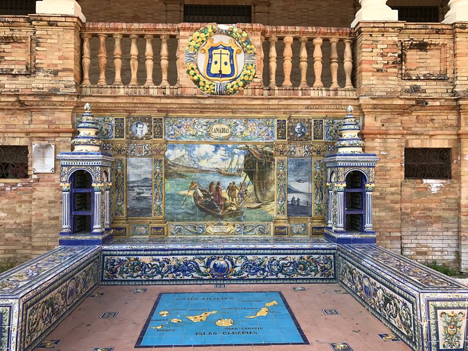 Один из самых известных аспектов Пласа де Эспанья — серия из 48 плиточных альковов и скамей, которые представляют каждую из областей Испании, а также ее двух архипелагов: Канарских и Балеарских островов. Каждый альков изображает герб, карты и важные исторические события, связанные с областью. Все они представлены в алфавитном порядке.