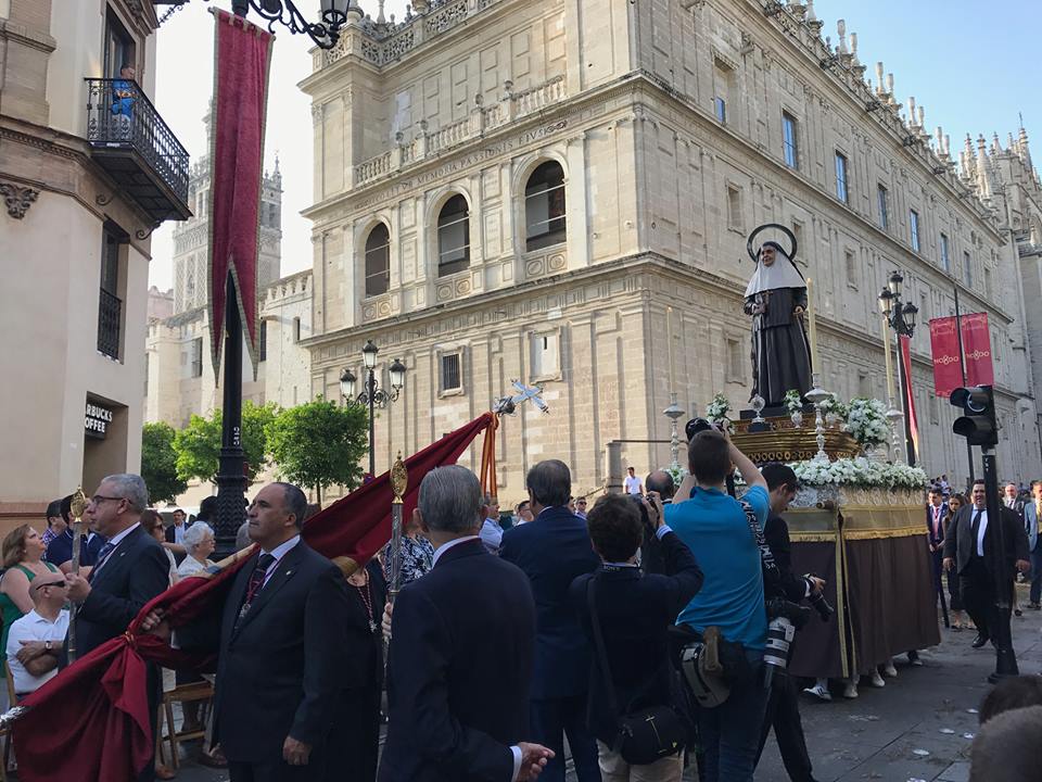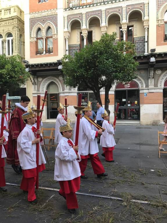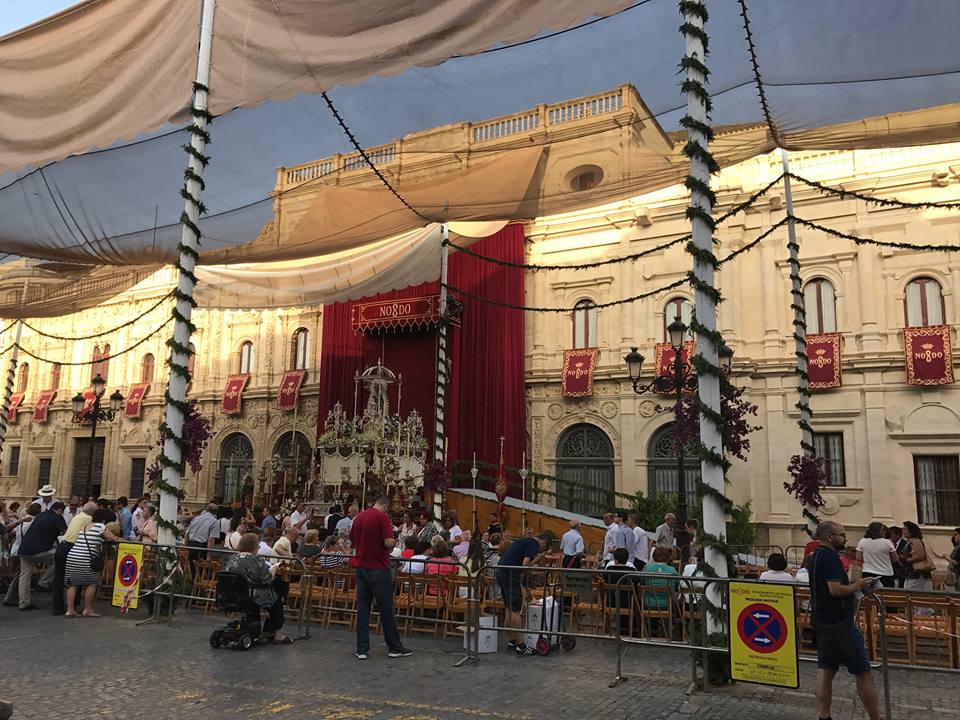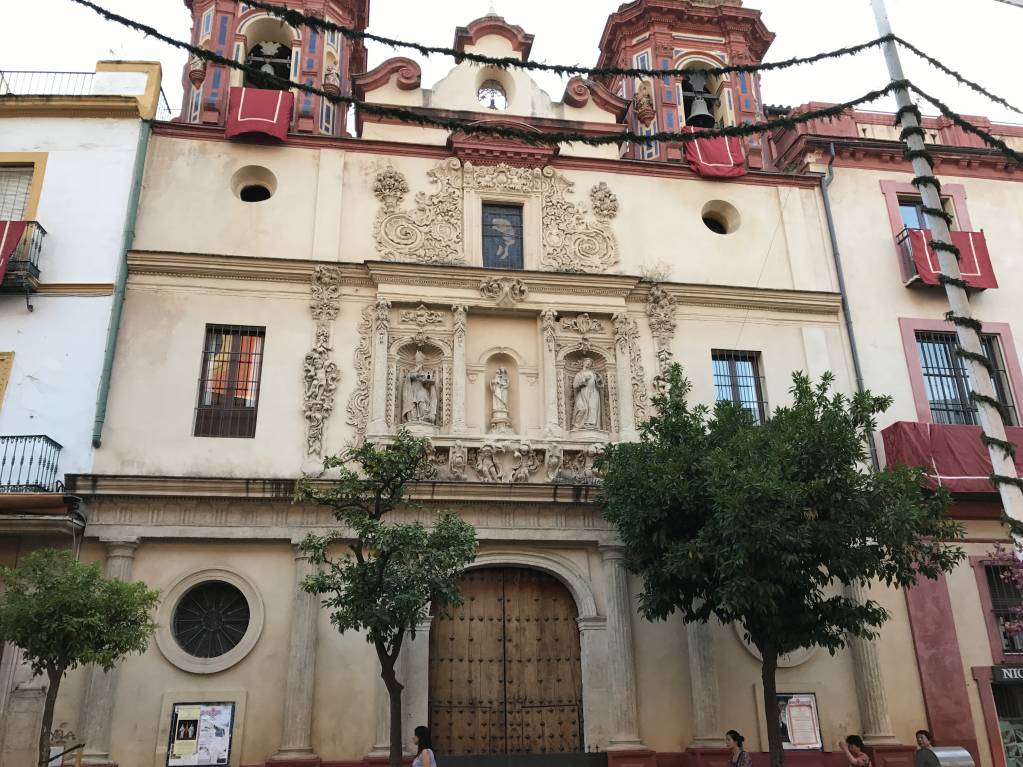 Пока мы были в Севилье, город вовсю готовился к какому-то религиозному празднику. Улицы щедро украшались живыми цветами и статуями Девы Марии.