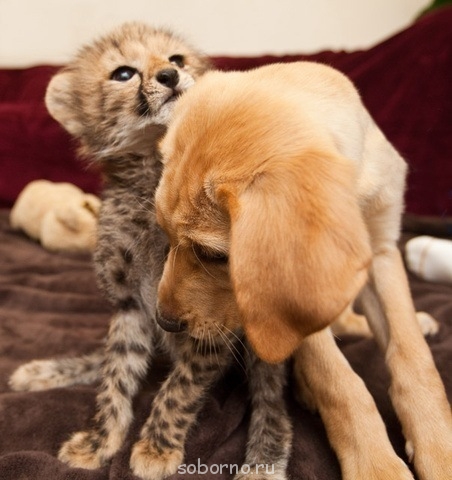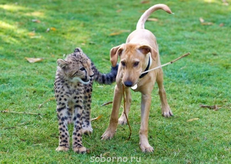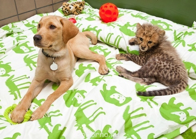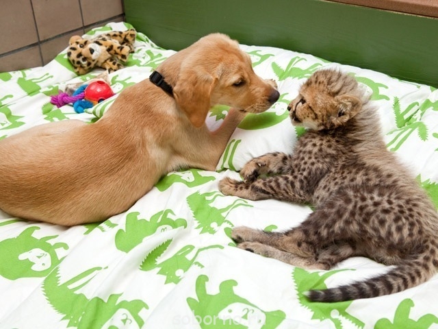 В парке развлечений Busch Gardens (штат Флорида, США) живут неразлучные друзья лабрадор Мтани и гепард Кейси. Они познакомились, когда были малышами, и с тех пор остаются верными друзьями. Семь первых фото сделаны в 2010 году, три последних - минувшим летом