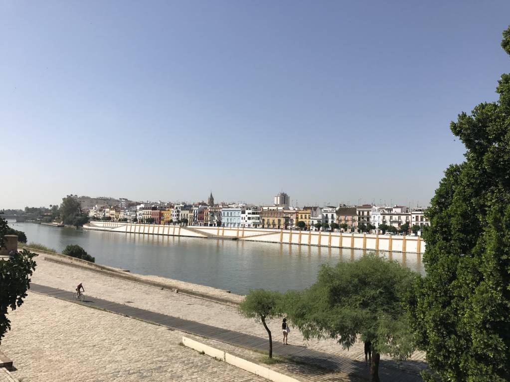 Севилья расположена по обе стороны реки Гвадалквивир, которая судоходна для морских кораблей.
