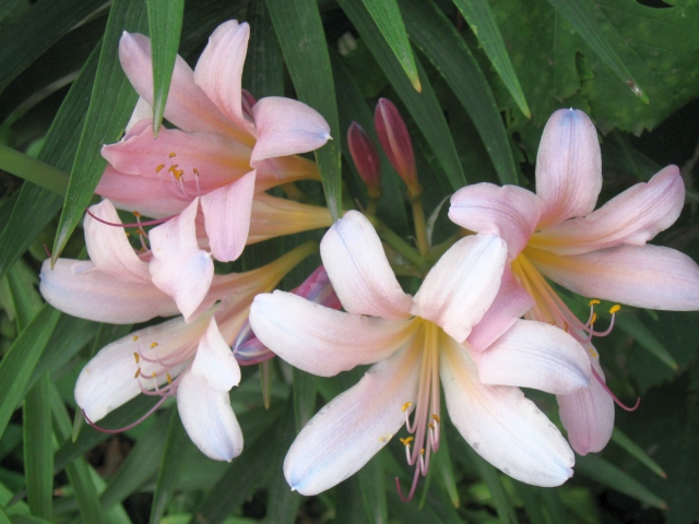Не знаю, что за цветок, нам его передали с Киевщины, там его называют "Голая дама". Ранней весной в феврале-марте растут листья, потом они быстро желтеют и сохнут, а в средине лета на голой палке появились эти цветы. Зацвёл впервые за 3 года.