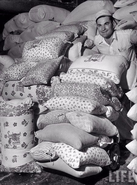 В тяжелые времена Великой Депрессии в 1930-е годы в США, из-за нехватки денег матерям приходилось шить своим детям одежду из мешков. Узнав об этом факте, производители муки запустили в производство мешки из цветастых фабричных тканей с рисунком.