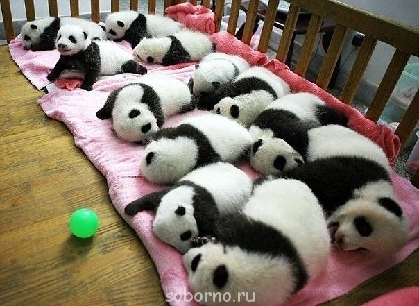 Детский сад для маленьких панд в Китае.