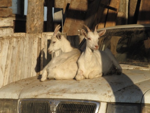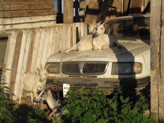кто хочет завести козу незабудьте приобрести старый автомобиль что бы ей было где полежать., новый тоже подойдёт
