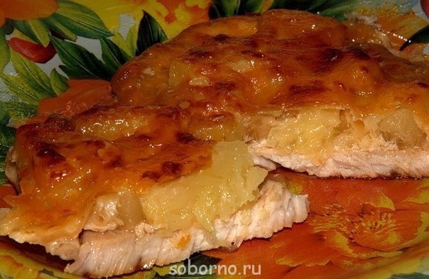 Лук почистить, помыть и нарезать кольцами. Мясо помыть, обсушить и нарезать ломтиками. Затем отбить кухонным молотком и посыпать солью и перцем. Сыр натереть на крупной терке.Противень для выпечки застелить фольгой, смазать растительным маслом и равномерно распределить порезанный лук. Сверху выложить мясо и майонез. Слить жидкость из банки с ананасами, выложить по одной шайбе на каждый ломтик мяса. Снова смазать майонезом. Равномерно посыпать тертым сыром. Запекать в разогретой до 180 градусов духовке в течение получаса. Мясо по-французски с ананасами готово!