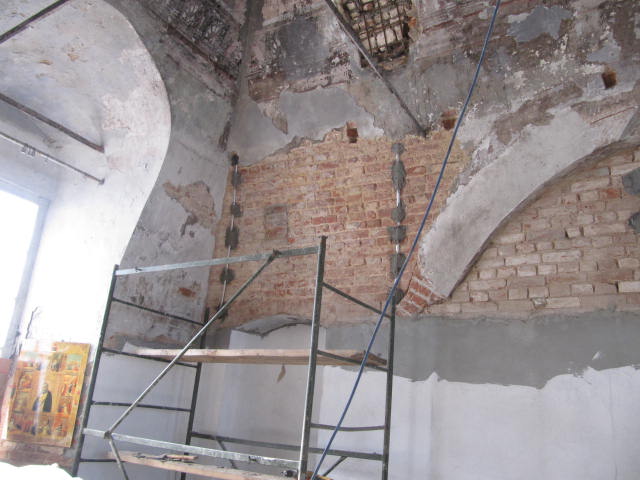 Из за отсутствия денежных средст работы по востановлению храма движутся очень медленно