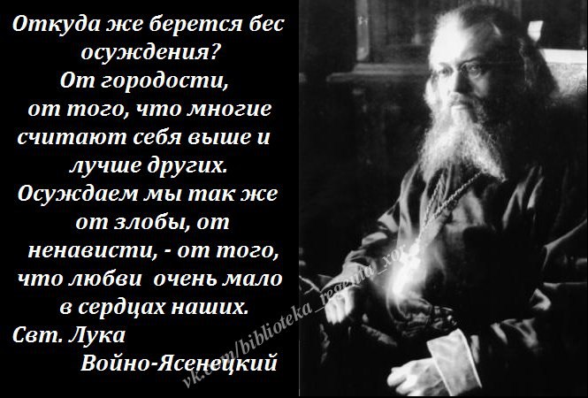"Если увидишь убийцу, или блудницу, или пьяницу, валяющегося на земле, не осуждай никого, потому что Бог отпустил их повода, а твой повод держит в руках. Если твой тоже отпустит, ты окажешься в худшем положении: можешь впасть в тот грех, в котором осуждаешь другого и погибнуть".