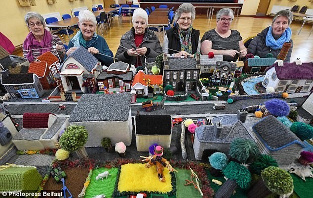 Вязальщицы из графства Антрим, Северная Ирландия, связали модель своей деревни Клохмиллз. Женщины от 49 до 87 лет воссоздали своё селение до мельчайших подробностей, чтобы собрать средства для помощи жертвам рака.