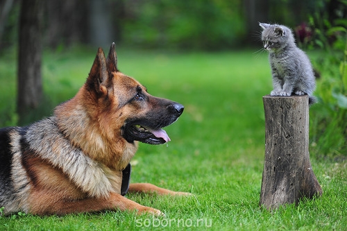 фото с овчаркой и котенком называется "Лежать! - я сказал."