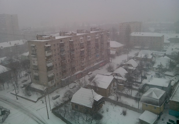 Сложно поверить в то, что это фото сделано в последних числах марта. В Киеве и по всей Украине по-прежнему господствует зима. За окном типичный пейзаж середины зимы. Снег не прекращается уже 7 сутки