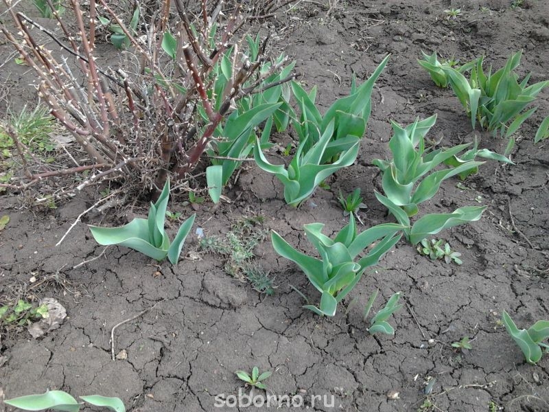 Показались мои тюльпаны.