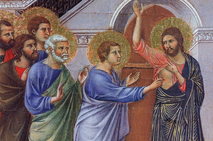 Это название означает первое воскресенье после Пасхи. "Анти" — напротив. Именно в этот день, 8-й по счету после Своего Воскресения, Иисус Христос явился снова всем ученикам. Среди них был Апостол Фома, который не поверил в это чудо. И произнес известную многим фразу: "если не увижу на руках Его ран от гвоздей, и не вложу перста моего в раны от гвоздей, и не вложу руки моей в ребра Его, не поверю".