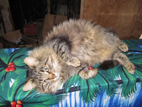 его в одном магазине приютили - подкармливают и он там днем отсыпается..дочка даже его на телефон шелкнула..правда, великан..не уговорили меня