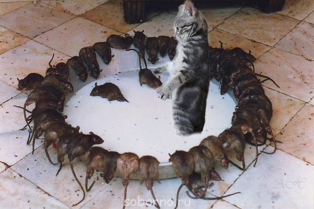Фотография с мышами известная, я ее часто вижу в сети, она сделана в каком-то буддистком храме, их там прикармливают. Это не мыши, а крысы.