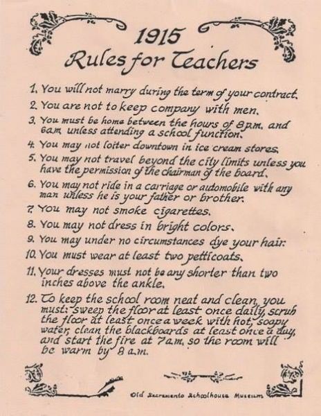 Правила для учительниц. 1915 год