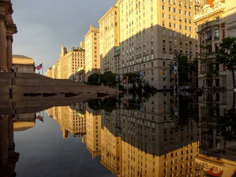 Это - недавно реконструированная плаза перед Metropolitan Museum of Art в Нью Йорке. Никакого фоторшопа, фонтаны и точка съёмки создают эту иллюзию.