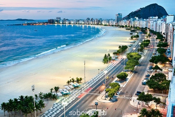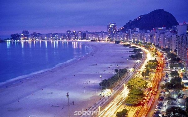 Копакабана - знаменитый четырёхкилометровый пляж в Рио-де-Жанейро, Бразилия.