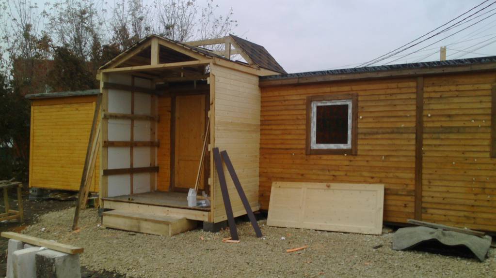 На дверях врезаны замки,все стены обшиты вагонкой.сегодня приобрели прожектор с датчиком движения,для подсветки у входа.расчертили шаблоны на купол.материал для каркаса тоже есть,завтра,думаем начнём.