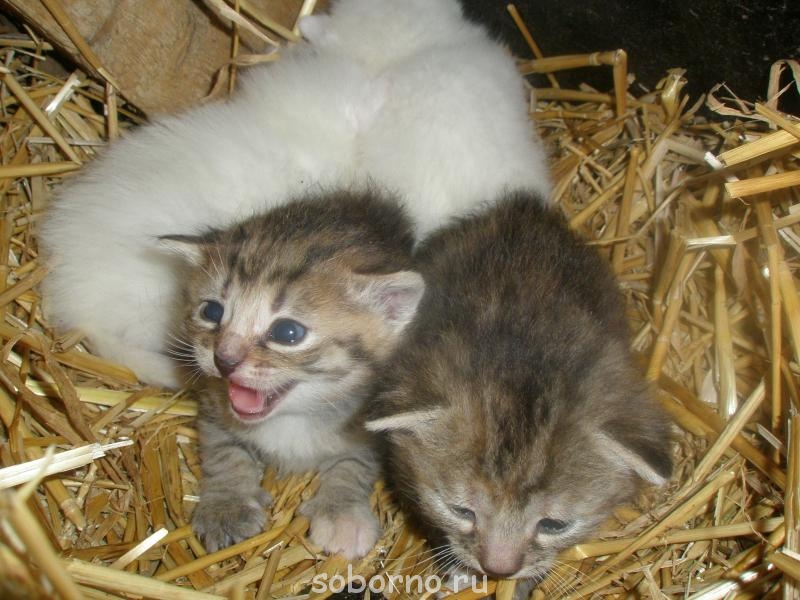 У нас в деревне в стайне, под крышей на соломе соседская кошка устроила "гнездо". Несколько дней назад видели как она их туда перетаскивала, в субботу нашли их. Но так как там темно было, посветили фонариком, три сразу начали попами поворачиваться- свет спать мешал, а один давай шикать, да еще как рот раскроет! Тигр настоящий. Характер с детства видно, защитник