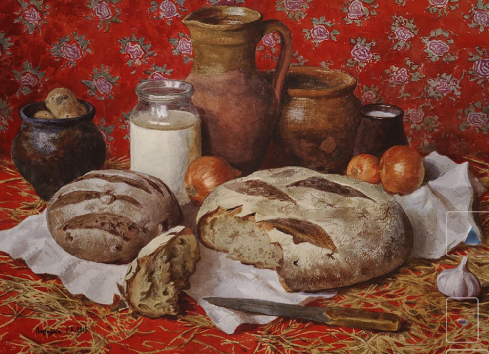 Ну, если обращать внимание на детали - на первой линии хлеб и нож, но хлеб отломан, а не отрезан.