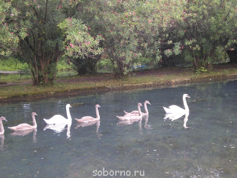 Лебеди в парке Нового Афона. На втором фото лебедь пришел покушать хлеба прямо из моих рук.