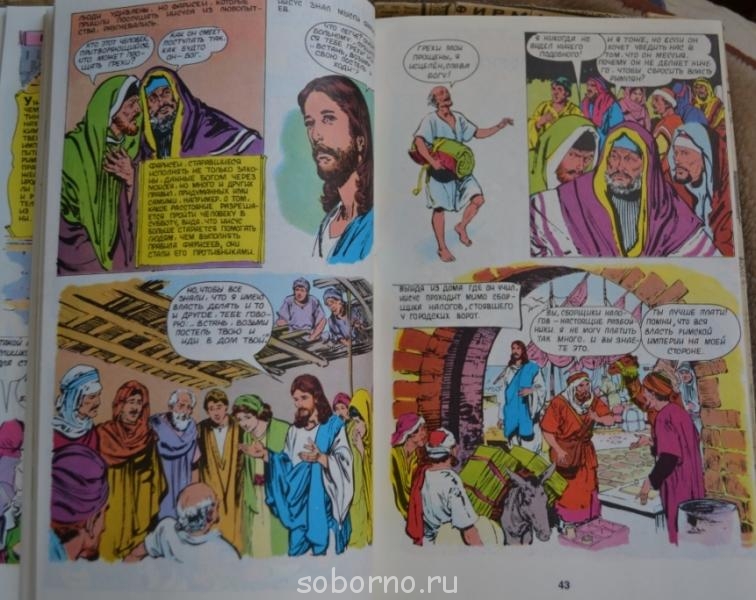 Мы когда с мужем поженились, объединили обе наши библиотеки и уже больше семи лет никак их не систематизируем. Иногда, проводя археологические изыскания. я нахожу вещи просто невероятные. Вот вчера просто утрамбовывала книжный шкаф и выпала книга...оказалось, что это Новый Завет и Деяния Апостолов в комиксах