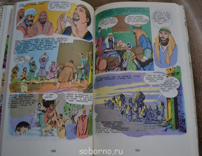 Не исключено, что я человек отсталый, т.к. я подобного издания никогда не видела. Не знаю, я не специалист по данным вопросам, но я что-то такой вариант изложения Священного Писания не понимаю. Вот, пара разворотов
