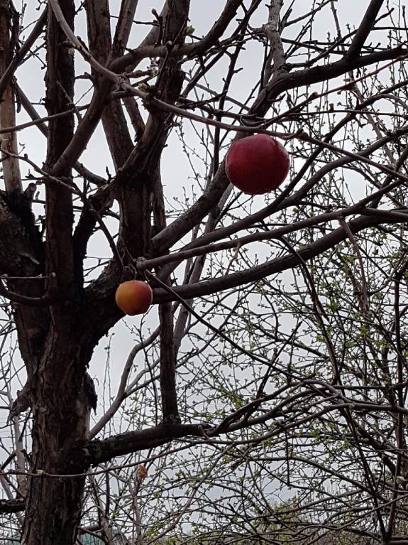У нас дождь второй день, но мы себя "бодрим". Вот и яблоки у нас поспели!